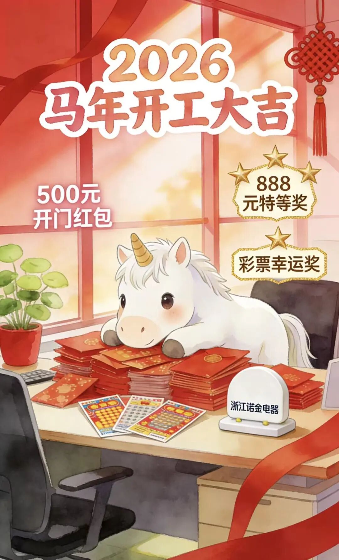 新年新气象,开工要有“排面”!公司里张灯结彩,年味依旧浓厚。熟悉的“开工大吉”海报映入眼帘,可爱的马年吉祥物立牌早已就位。